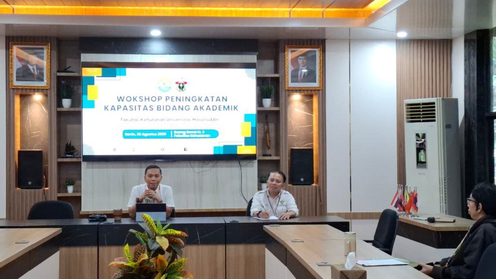 Tamalanrea-Makassar. Fakultas Kehutanan Universitas Hasanuddin (Unhas) melalui Bidang Akademik dan Kemahasiswaan menyelenggarakan kegiatan workshop peningkatan kapasitas bagi Tenaga Kependidikan (Tendik) Bidang Akademik. Kegiatan berlangsung mulai pukul 11.00 Wita di Ruang Senat Lantai 2 Fakultas Kehutanan, Kampus Unhas Tamalanrea, Makassar, Senin (25/8/2025).