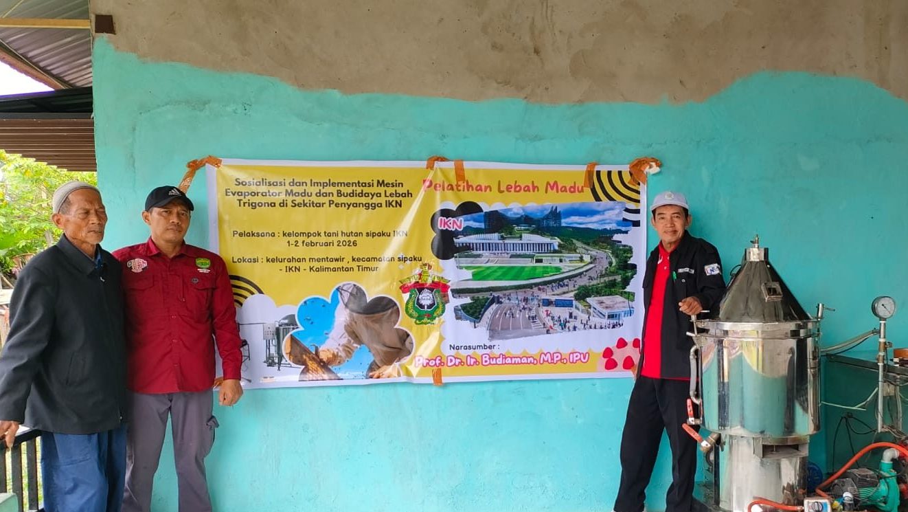 Dosen Fakultas Kehutanan Universitas Hasanuddin (Unhas) berperan aktif sebagai narasumber dalam kegiatan Sosialisasi dan Implementasi Mesin Evaporator Madu dan Budidaya Lebah Trigona di Sekitar Penyangga IKN. Kegiatan ini dilaksanakan oleh Kelompok Tani Hutan Sipaku IKN pada 1–2 Februari 2026 di Kelurahan Mentawir, Kecamatan Sepaku, wilayah Ibu Kota Nusantara (IKN), Kalimantan Timur.